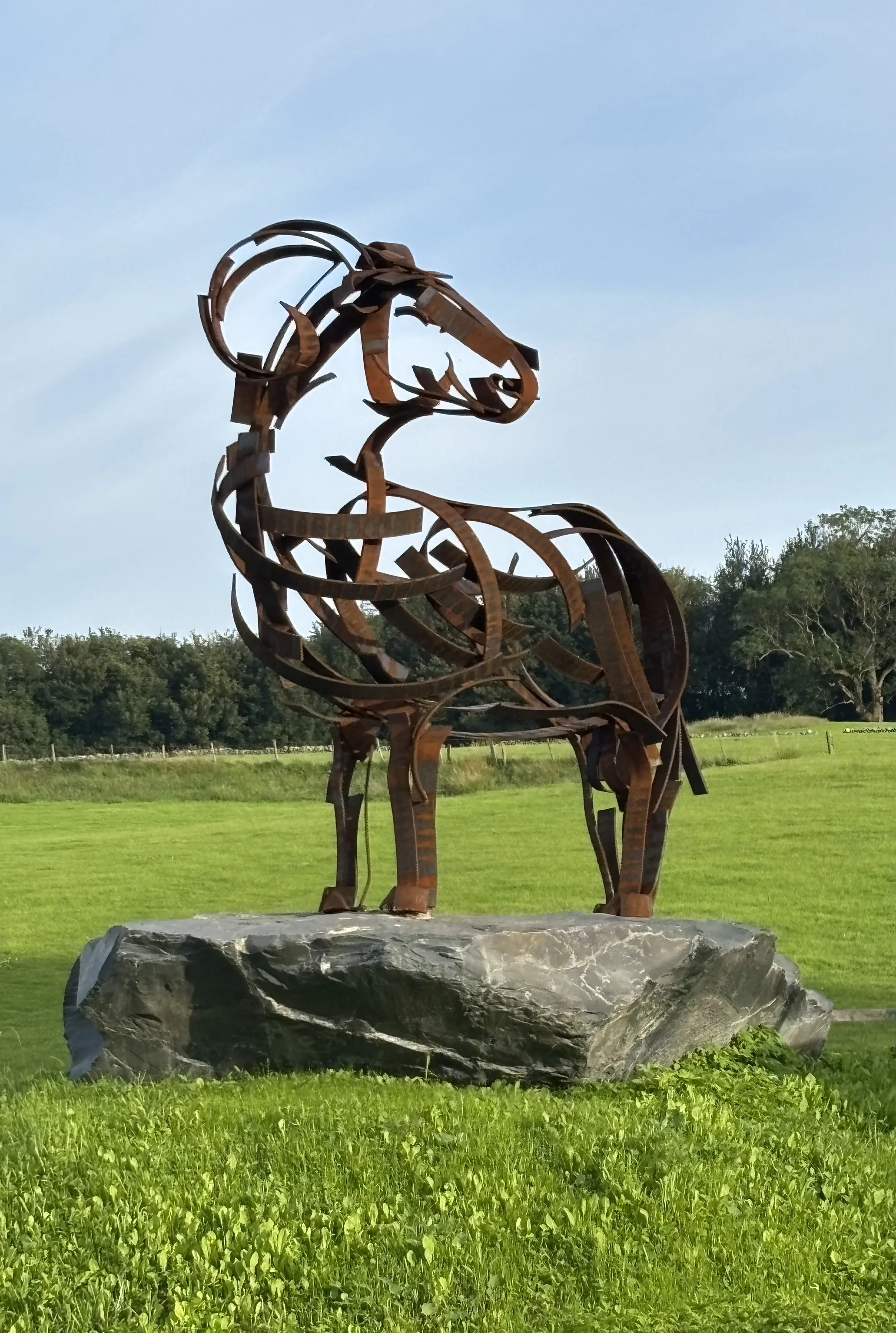 A large, three-meter-high ram sculpture has been installed at the entrance to Kirkby Lonsdale as a gift from local sculptor Andy Kay.